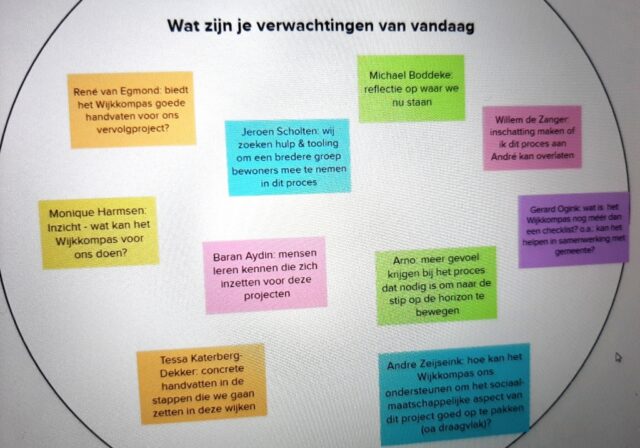 “Eén van de bewonersgroepen kwam er bijvoorbeeld achter dat ze een aantal onderliggende sporen in de eerste fase Samen starten nog helemaal niet met elkaar hadden besproken. Anderzijds zagen ze tijdens die trainingssessie wél in dat het belangrijk is om eerst nog even een stap terug te doen voordat ze hun volgende stap vooruit kunnen gaan zetten. Dat is voor ons als gemeente heel belangrijk. Je hoeft er helemaal niet rigide in te zitten en precies de volgordelijkheid van het Wijkkompas te volgen. Het gaat er vooral om dat je het gesprek kunt voeren en dat je op een begrijpelijke manier kunt laten zien wat er allemaal gedaan moet worden.”