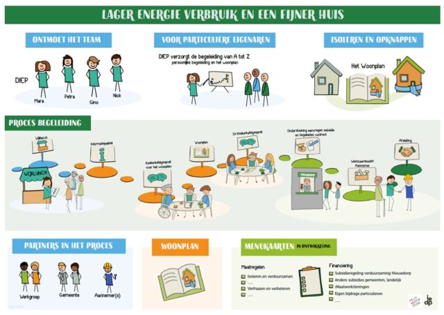Juist omdat er sprake is van een lastig traject, probeert Diep zo transparant mogelijk te zijn in de communicatie met de bewoners. Meer keuzevrijheid bieden als het gaat om de technische oplossingen is een goede eerste stap, door inzicht te geven in welke combinaties van maatregelen leiden tot de benodigde labelstappen. Maar ook de precieze taak en rol van de adviseur, en de relatie met gemeente en corporatie moeten voor bewoners volstrekt duidelijk zijn om te bouwen aan vertrouwen Uiteindelijk is er in deze wijk vooral een grote behoefte aan maatwerk, gezien alle individuele woonwensen en woonsituaties.