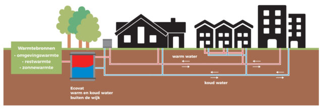 “Een Ecovat is een groot ondergronds buffervat gevuld met water, waar je warmte en koude in kunt opslaan om die op een later moment te gebruiken. Doordat je een overschot aan duurzaam opgewekte energie opslaat en het vervolgens inzet in tijden van schaarste, wordt de duurzaam opgewekte energie optimaal gebruikt. Dankzij de grote opslagcapaciteit en de efficiëntie van dit systeem kun je energie opslaan over de seizoenen heen.”