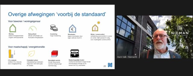Al met al komt Harm Valk tot negen vrij diverse redenen om meer te doen aan verduurzaming van een woning dan de standaard suggereert: “Juist als je uitzoomt is het vaak aantrekkelijk om voorbij de standaard te gaan. Dus kijk ook verder dan alleen maar naar het thermisch isoleren om van het aardgas af te gaan.”